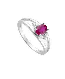 Bague Femme - Rubis - Or 18 Carats - Diamant 0,08 Carats