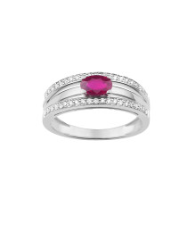 Bague Femme - Rubis - Or 18 Carats - Diamant 0,21 Carats