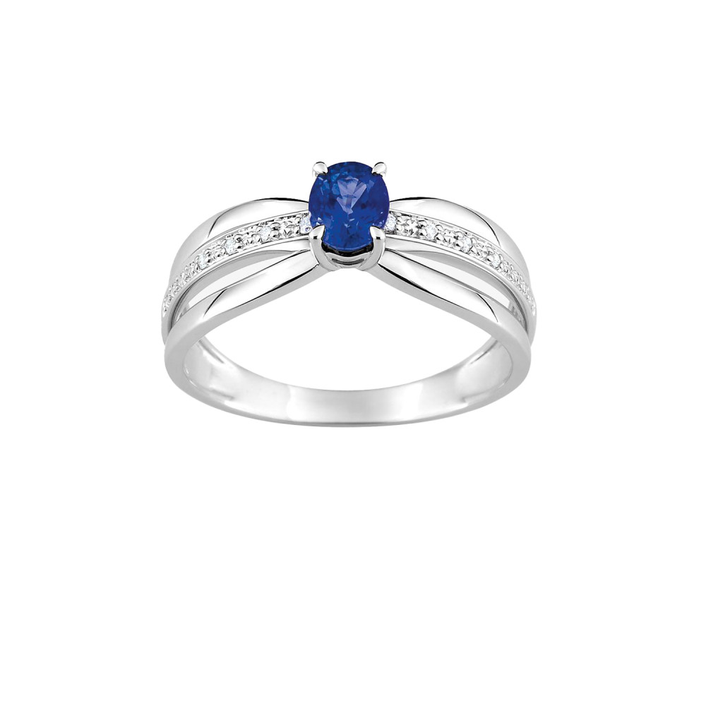 Bague Femme - Saphir - Or 18 Carats - Diamant 0,03 Carats