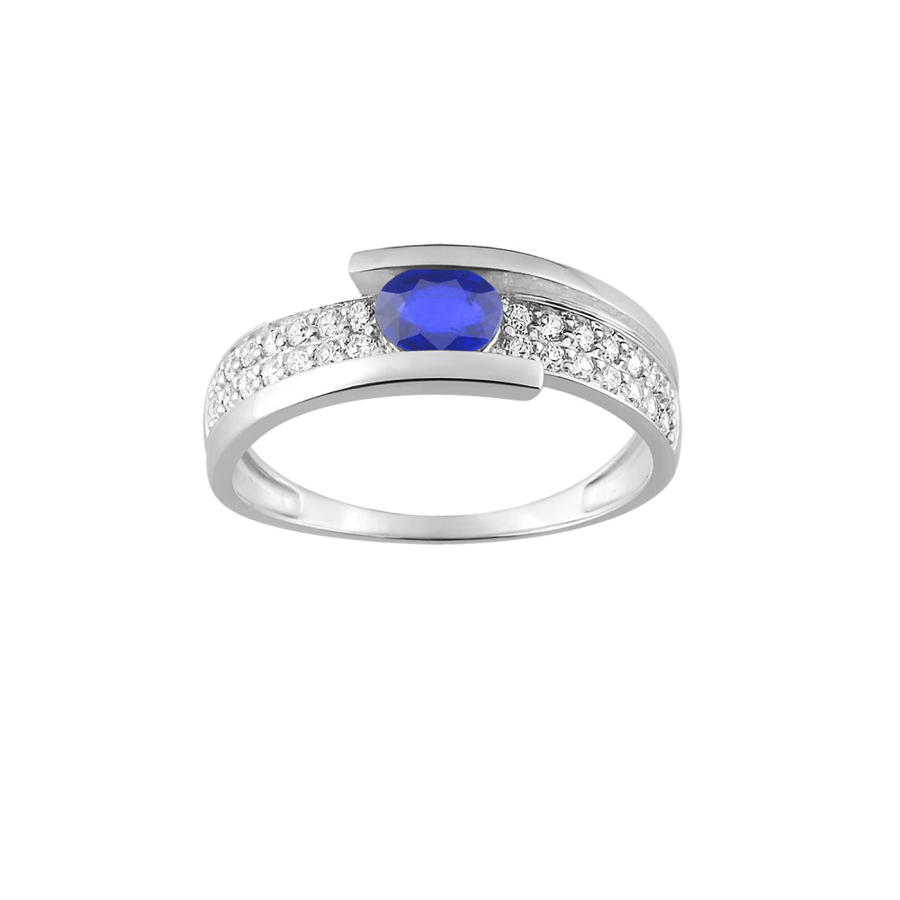 Bague femme - Saphir et Oxyde de zirconium - Or 9 Carats - Bijou en or - Bague - Poids moyen : 1,9 - Tailles : 43 - 70 - Bijou design - Tailles spéciales disponibles sur demande - Ce bijou est livré dans son écrin accompagné de son certificat d'authenticité. À offrir ou pour se faire plaisir. Toutes nos créations sont garanties 2 ans. Nous utilisons des matières de haute qualité et anallergiques - Tous mes bijoux, créateur de bijoux depuis 1963.