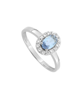 Bague Femme - Aigue-Marine et Oxyde de zirconium - Or 9 Carats