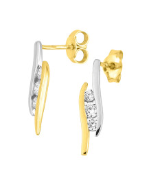 Boucles d'oreilles femme - bicolores - Oxyde de zirconium - Or 9 Carats