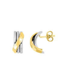 • Ces puces d’oreilles ont une forme arrondie rappelant des demies créoles. Un lien en Or jaune vient attacher les trois anneaux les composant en Or blanc. Un modèle féminin et facile à porter. Métal : Or 375/00. Poids métal : 0,85 gr. Fermoir : poussette belge.